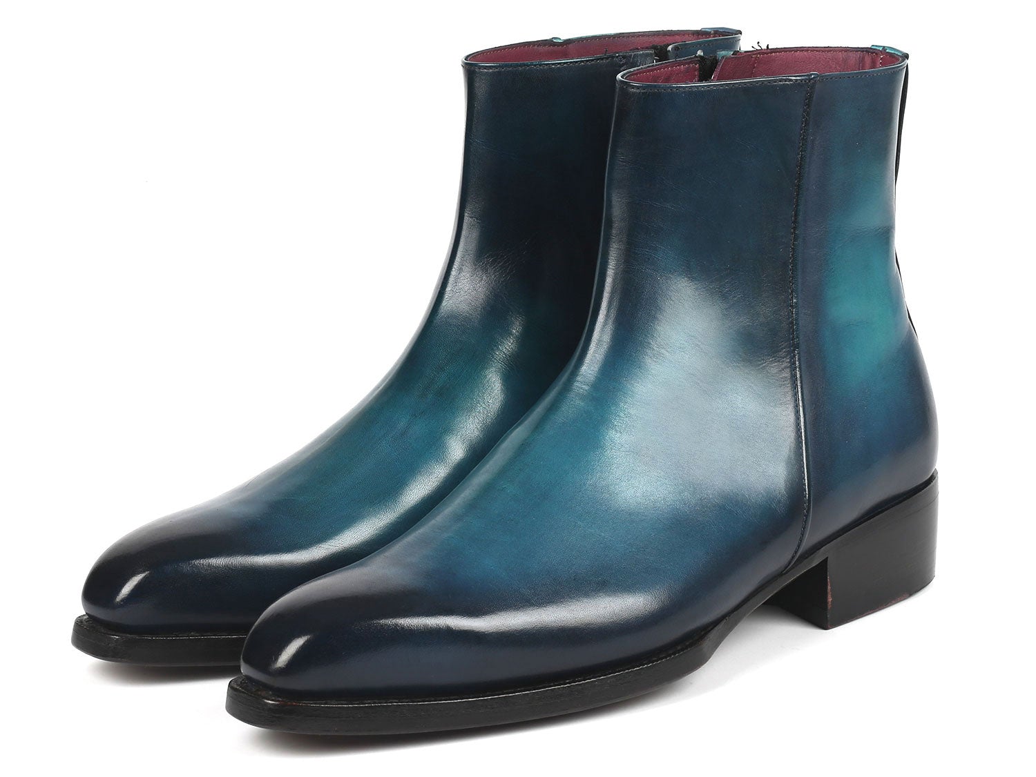 Paul Parkman Blue Burnished Side Zipper Boots Goodyear Welted (ID#BT3955-BLU)