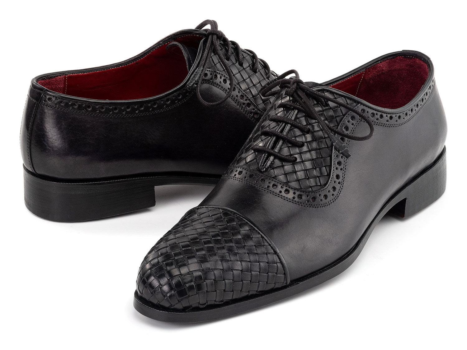 Paul Parkman Men's Black Woven Leather Cap Toe Oxford Shoes (ID#49851-BLK)