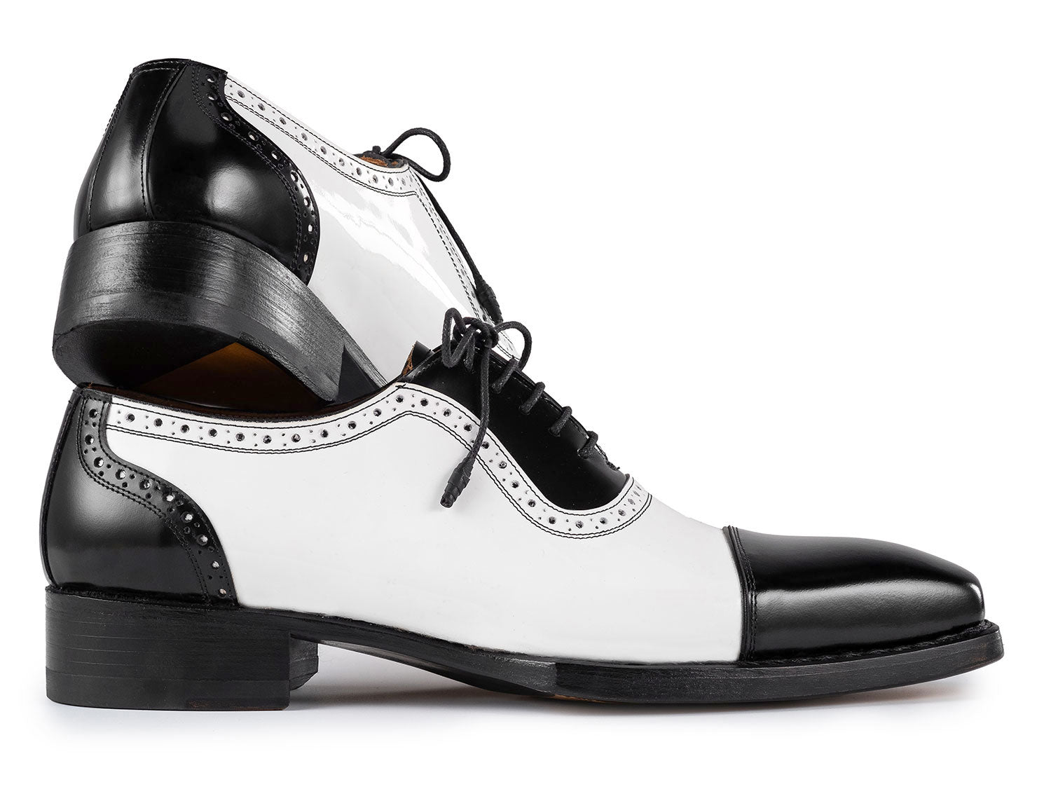 Paul Parkman Men's Goodyear Welted Cap Toe Oxfords Black & White (ID#9482-BNW)