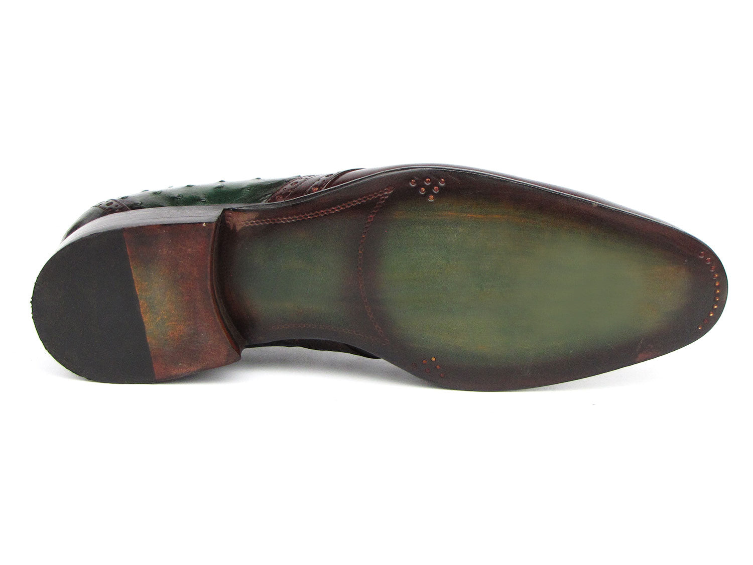 Paul Parkman Men's Green Ostrich & Brown Leather Derby Shoes (ID#956GB57)