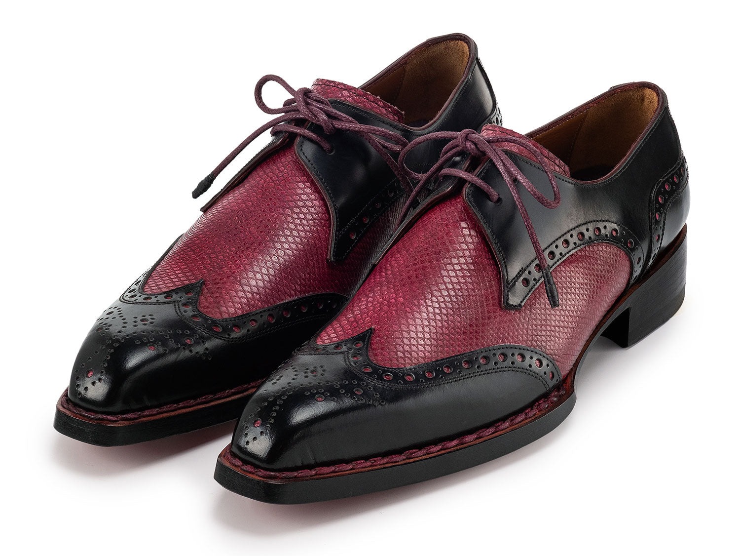 Paul Parkman Men's Hand-Welted Black & Red Leather Wingtip Derby Shoes (ID#170KRBRD)