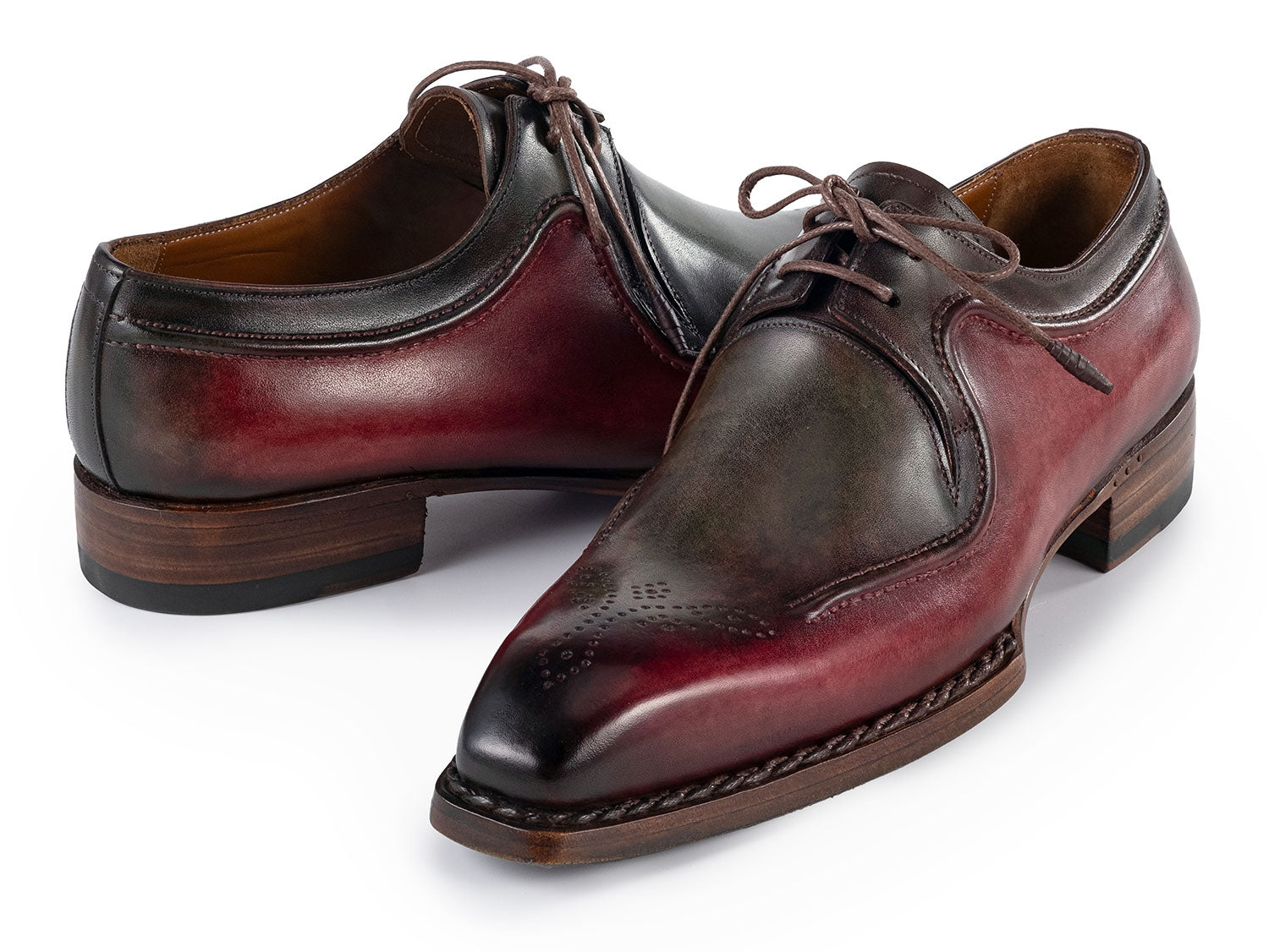 Paul Parkman Men's Hand-Welted Green & Brown Leather Derby Shoes (ID#326Y27)