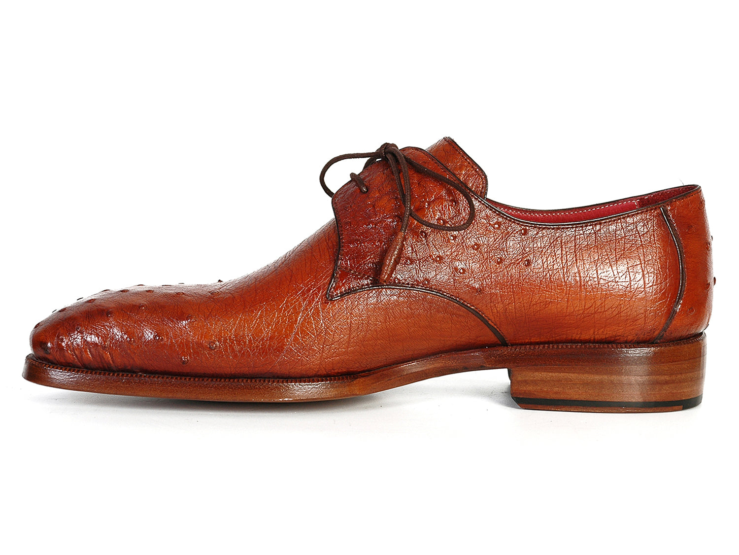 Paul Parkman Men's Tobacco Color Genuine Ostrich Leather Upper Derby Shoes (ID#33B76-TAB)